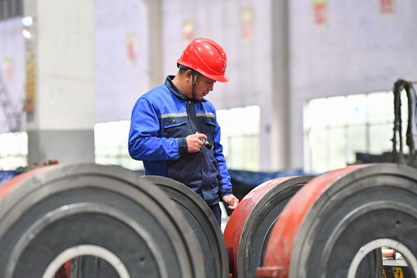 總裝車間里,車間主任尤曉輝拿著手電筒檢查多級泵中段構(gòu)件的表面平整度。400公斤的中段有1米多高,兩個密封面之間要嚴(yán)絲合縫,以確保產(chǎn)品的穩(wěn)定性、可靠性。“春節(jié)后有10多臺多級泵需要交付,我們得抓緊時間完成裝配。”尤曉輝說。