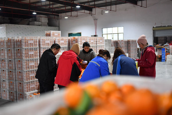 麻陽楠木橋水果專業(yè)合作社工人在分揀橙子。記者 陳振海 攝