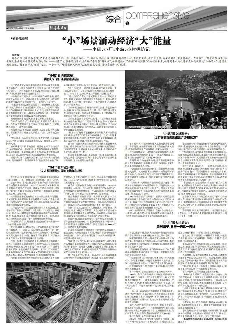 新春之際,《經(jīng)濟(jì)參考報》記者走進(jìn)熱辣鮮香的小店、訂單火熱的小廠、游人如織的小站、舊貌換新顏的小村,看消費變革、看產(chǎn)業(yè)升級、看文旅融合、看鄉(xiāng)村振興。在這些“小”場景的探訪中,記者深切感受到其中蘊藏的韌勁與信心——經(jīng)營了20多年的燒烤小店開始探索消費“新玩法”,傳統(tǒng)制造小廠摒棄“照搬照抄”吹響創(chuàng)新號角,磁浮列車小站讓游客更加便捷抵達(dá)“詩和遠(yuǎn)方”,曾經(jīng)貧困的偏遠(yuǎn)山村不懈尋求“逆襲”之路。一個個“小”場景承載人間煙火,濃縮民生冷暖,涌動著經(jīng)濟(jì)“大”能量。