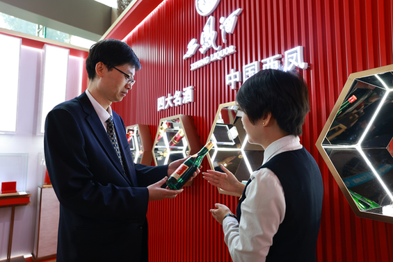 圖為陜西西鳳酒廠集團(tuán)有限公司黨委書記、董事長(zhǎng)張正在西鳳酒展廳參觀