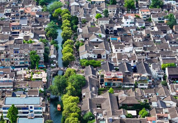 這是2023年7月3日拍攝的蘇州平江歷史文化街區(qū)(無人機(jī)照片)。新華社記者李博 攝