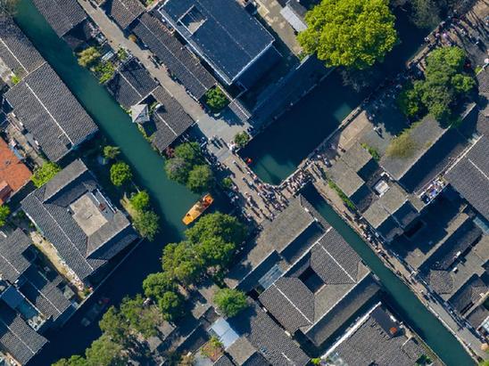 這是4月18日拍攝的蘇州平江歷史文化街區(qū)(無人機(jī)照片)。新華社記者李博 攝