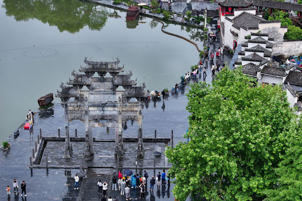 5月4日,游客在安徽省黃山市黟縣西遞古村游玩賞景。新華社發(fā)(施亞磊 攝)