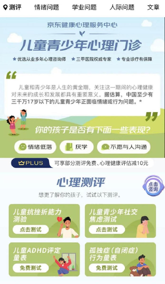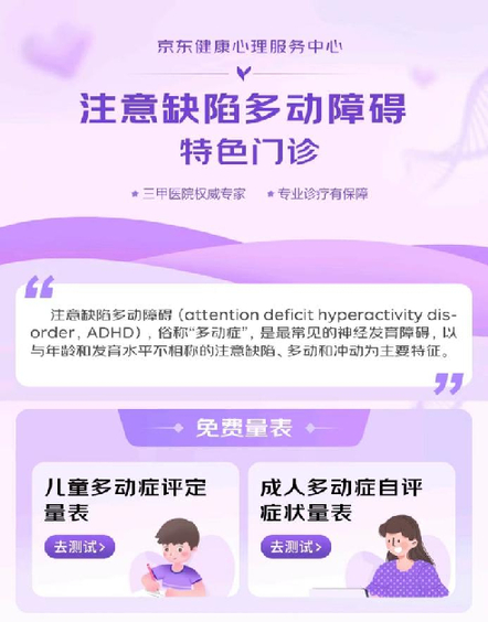 京東健康心理服務(wù)中心的兒童與青少年心理門診不僅提供精神科專家問診和線上心理咨詢,還推出了多種評定量表,涵蓋兒童常見神經(jīng)發(fā)育障礙的注意缺陷多動障礙(ADHD)量表和自閉癥譜系障礙量表,以及關(guān)注孩子社交和抗壓能力的測評。此外,門診還擁有豐富的科普資源,包括精神科醫(yī)生和心理咨詢師的原創(chuàng)科普文章和直播,幫助家長更全面了解孩子的心理問題。