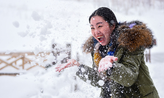 長白山景區(qū)內(nèi)玩雪的游客。 記者 王昊飛 攝