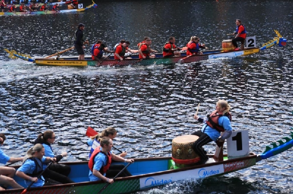 在英國,第十屆全英中華端午龍舟會(huì)8日和9日在大曼徹斯特地區(qū)索爾福德市勞瑞碼頭水上運(yùn)動(dòng)中心舉行。今年比賽的最大亮點(diǎn)是曼城和曼聯(lián)兩只足球俱樂部把他們著名的曼徹斯特“德比”從足球場帶到了龍舟賽道上。