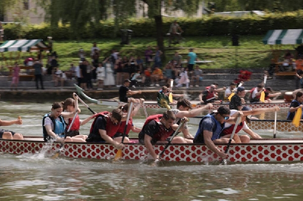 在斯洛文尼亞首都盧布爾雅那市中心的盧布爾雅尼察河上,8日舉行了一場中國傳統(tǒng)龍舟賽。13支隊(duì)伍共約130人參加比賽,其中還包括來自克羅地亞、意大利和捷克的參賽隊(duì)伍。