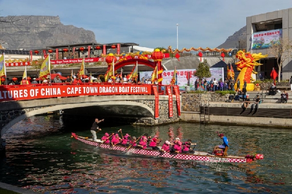 ??6月8日,人們在南非開普敦參加第二屆“文化中國·開普敦龍舟節(jié)”比賽。新華社記者王雷攝