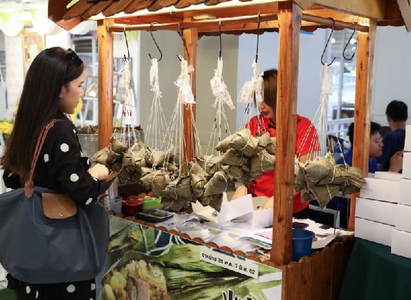 ??2019年6月2日,一名女子在泰國曼谷的一家酒店內(nèi)購買粽子。新華社記者張可任攝