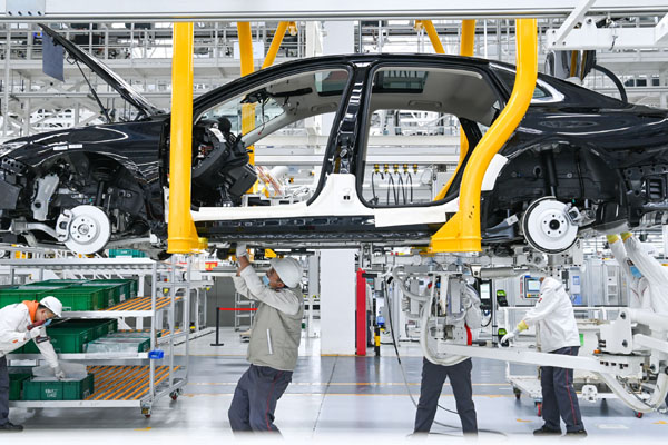 ——搶抓機遇,助力“汽車城”駛入新能源汽車產業(yè)快車道。東風大街上,“第一汽車制造廠奠基紀念”漢白玉基石巍然矗立,廠區(qū)的紅墻保留著建廠時的風貌。而走入一汽紅旗繁榮工廠的廠門,取代“懷舊風”的,是一派現代化圖景:車間寬敞明亮,無人小車穿梭其間,靈活避障,自動機械臂手舞足蹈,緊張忙碌,工人操作聚精會神,有條不紊。
