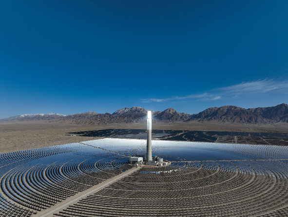 在青海省海西蒙古族藏族自治州德令哈市光伏(光熱)產業(yè)園拍攝的光熱電站(無人機照片)。 新華社記者 張龍 攝