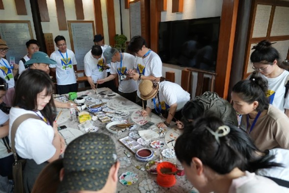 7月6日,來自北京電影學院、杭州師范大學等23所高校54名師生走進創(chuàng)業(yè)賽點村鄣吳村,領略吳昌碩大師的藝術人生。現(xiàn)場還開展了賽事沙龍分享,與會人員針對賽題踴躍發(fā)言,從賽題思路、答題技巧到成果轉化都提出了自己的想法,豐富了賽事推廣。