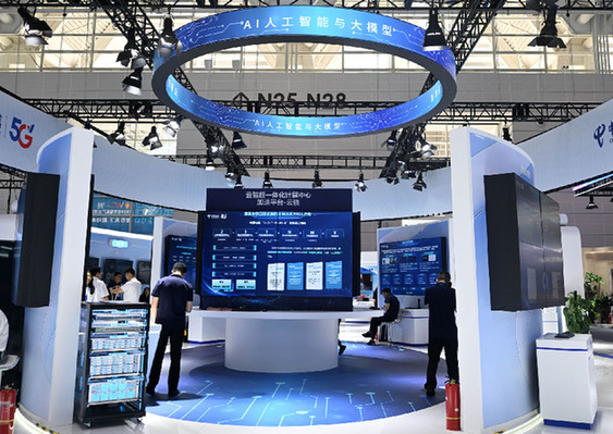 觀眾在2024世界智能產(chǎn)業(yè)博覽會中國電信展區(qū)參觀。 記者 趙子碩 攝