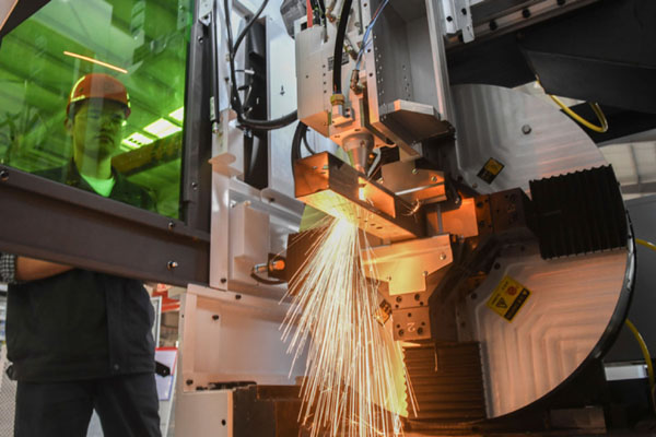 這是一臺(tái)由華工科技產(chǎn)業(yè)股份有限公司自主研發(fā)的重型管材激光切割加工智能裝備。它不僅可在十幾米的大型鋼材上以0.1毫米的精度“雕花”,還可完成從材料到成品的所有加工流程,一臺(tái)設(shè)備就是一個(gè)工廠。華工科技董事長(zhǎng)馬新強(qiáng)說(shuō):“我們的激光加工設(shè)備在海外越來(lái)越受歡迎,尤其近幾年在德國(guó)銷售量大增,并帶動(dòng)歐洲市場(chǎng)銷售額近兩年增長(zhǎng)超80%。”