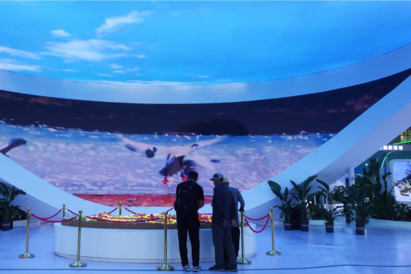 正如楊棟所說,青洽會現(xiàn)場最吸引人的是綠色發(fā)展館。記者在展館入口處的一個沙盤前看到,一根根白色風(fēng)力發(fā)電桿點(diǎn)綴著綠草如茵的山坡,一塊塊光伏發(fā)電板拼成了“藍(lán)色海洋”,深山峽口處的抽水蓄能電站則更顯山勢的雄偉……大美青海的山川戈壁,在綠色成為發(fā)展主色調(diào)的今天,處處有新機(jī)。