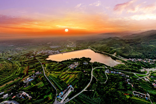 晨曦中的周至縣周塬路和駱峪水庫。受訪者供圖