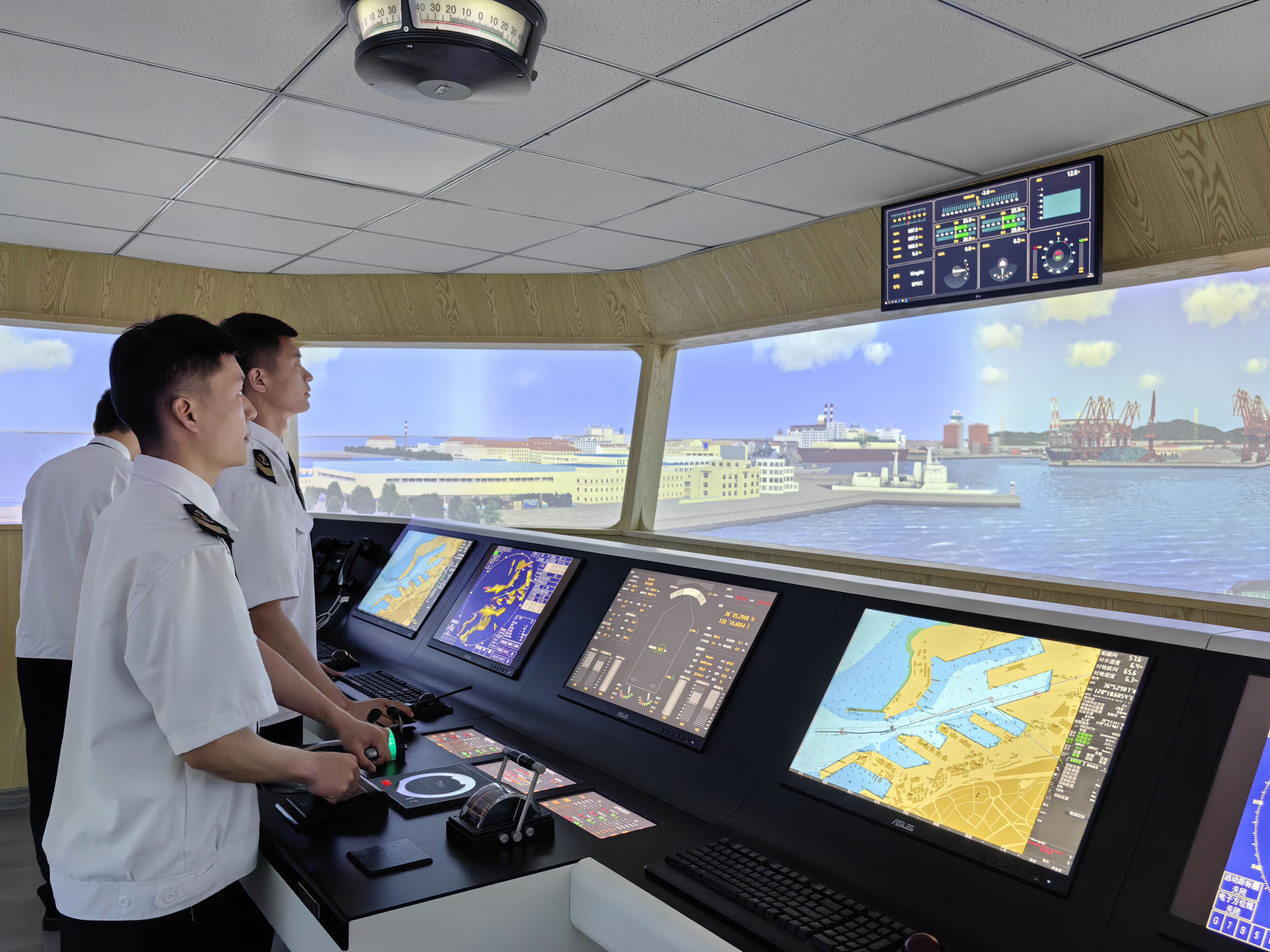 青島港灣職業(yè)技術學院的學生用航海模擬器訓練。記者 張力元 攝