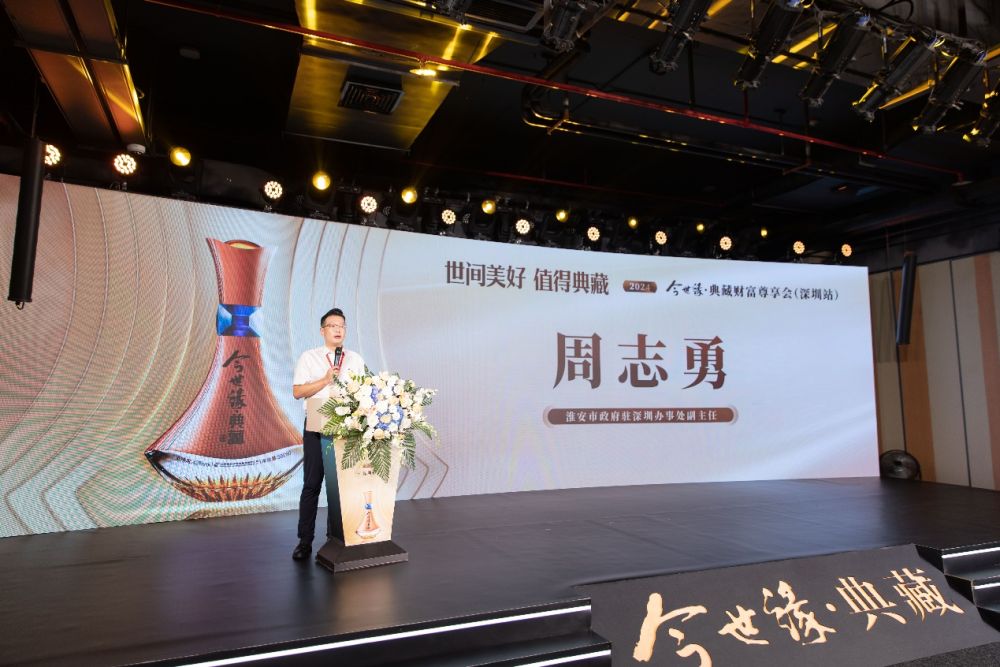 淮安市政府駐深圳辦事處副主任周志勇發(fā)表致辭。他說,江蘇淮安文化底蘊(yùn)深厚,而今世緣酒業(yè)作為淮安的杰出代表,此次在深圳舉辦今世緣·典藏財(cái)富尊享會(深圳站),不僅體現(xiàn)了對深圳市場的重視,也彰顯了淮安與深圳之間日益密切的交流與合作。