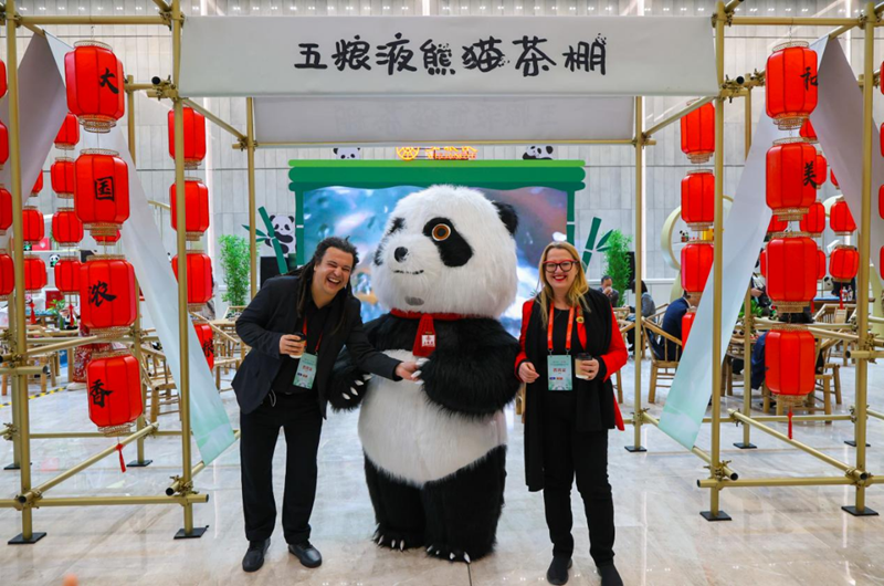 熊貓茶棚和熊貓人偶吸引參會嘉賓體驗(yàn)打卡。