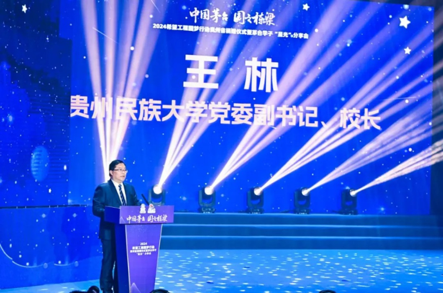 12月23日,由中國青少年發(fā)展基金會、共青團(tuán)貴州省委、茅臺酒股份公司主辦的“中國茅臺·國之棟梁”2024希望工程圓夢行動貴州省捐贈儀式暨茅臺學(xué)子“星光”分享會在貴州民族大學(xué)舉行。