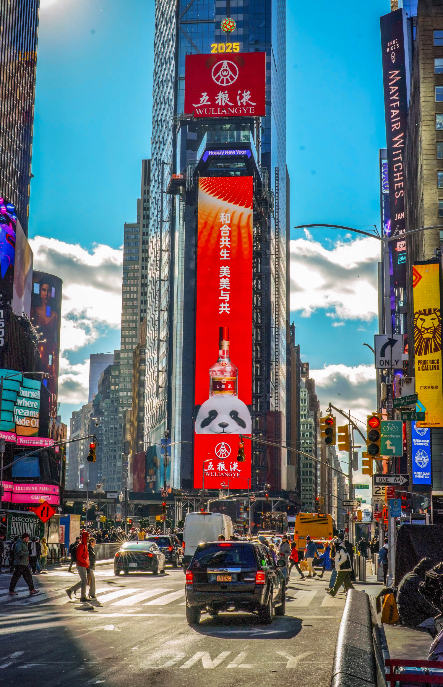 當(dāng)?shù)貢r間1月2日,美國紐約時報廣場水晶球大樓上,一只身著“中國紅”裝扮的大熊貓悄然亮相。這是五糧液在紐約時代廣場投放的首支大型3D廣告片,巧妙地融合了國寶大熊貓、五糧液酒等深受海外民眾喜愛的中國元素,瞬間吸引了全球目光。現(xiàn)場觀眾對這支廣告表現(xiàn)出濃厚的興趣,紛紛駐足用手機(jī)拍照留念,記錄下“和美”瞬間。
