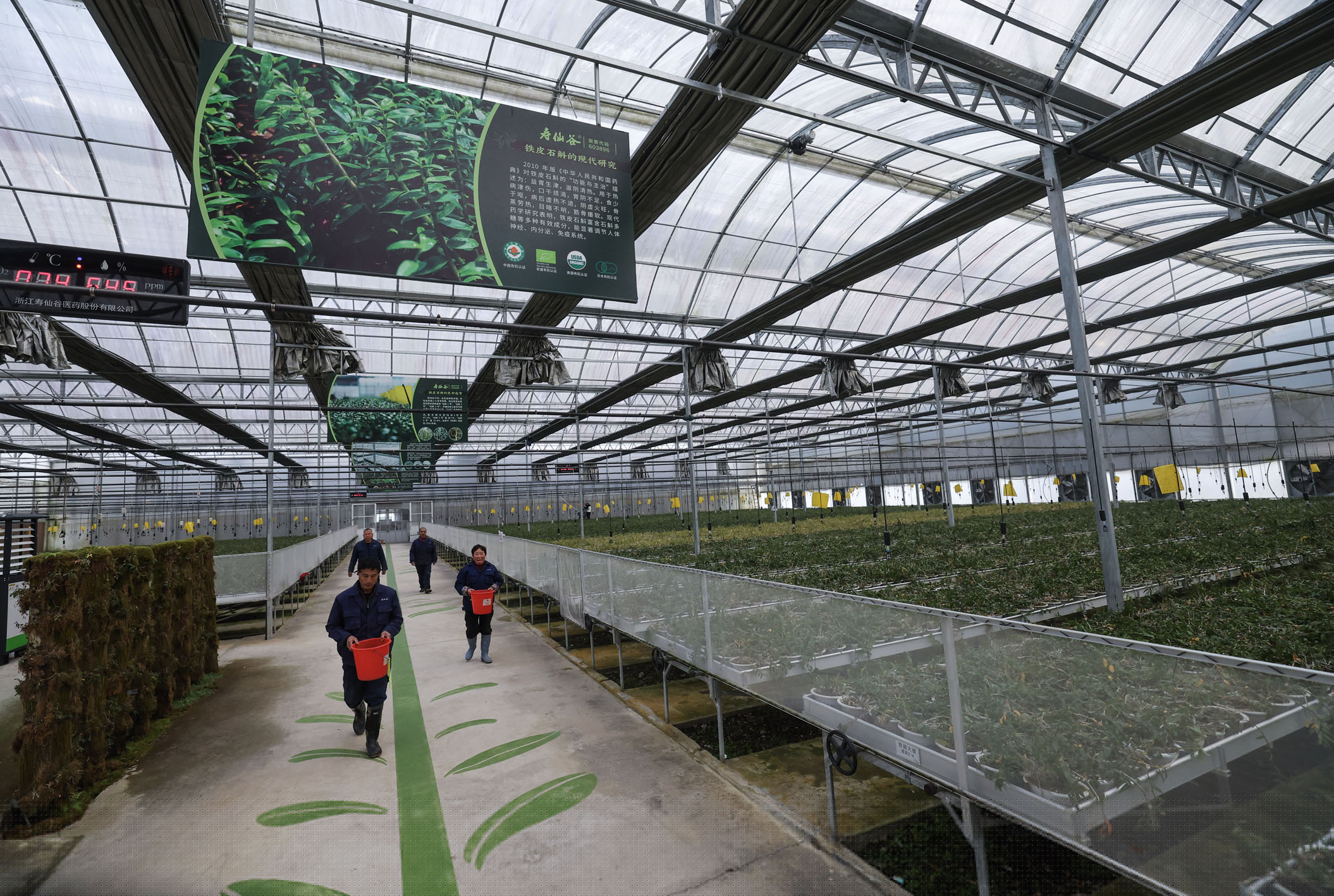 圖為近日拍攝的金華市武義縣浙江壽仙谷醫(yī)藥股份有限公司的有機國藥共富工坊數(shù)字化大棚。