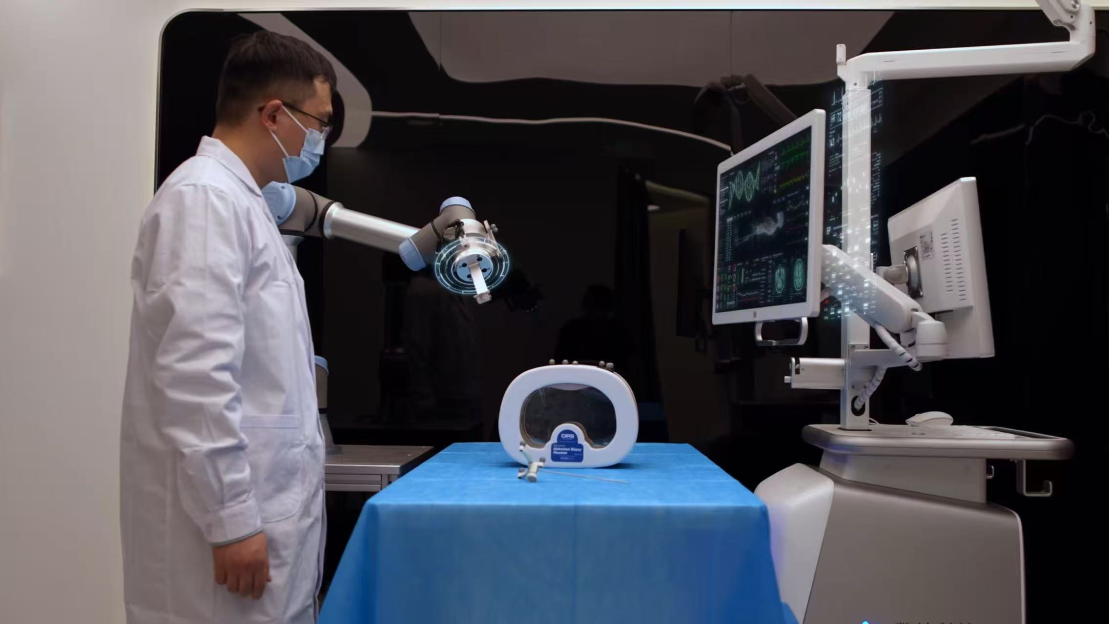 數(shù)坤科技開(kāi)發(fā)的穿刺手術(shù)導(dǎo)航系統(tǒng)(軟件)+手術(shù)機(jī)器人(硬件)。受訪者供圖