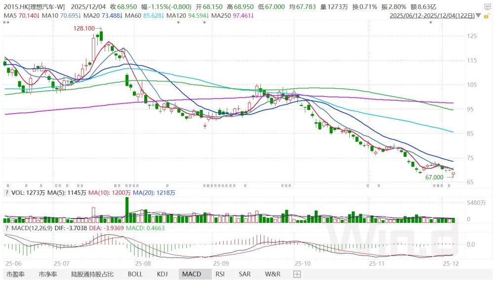 圖:理想汽車近期股價(jià)持續(xù)下跌 資料來(lái)源:Wind