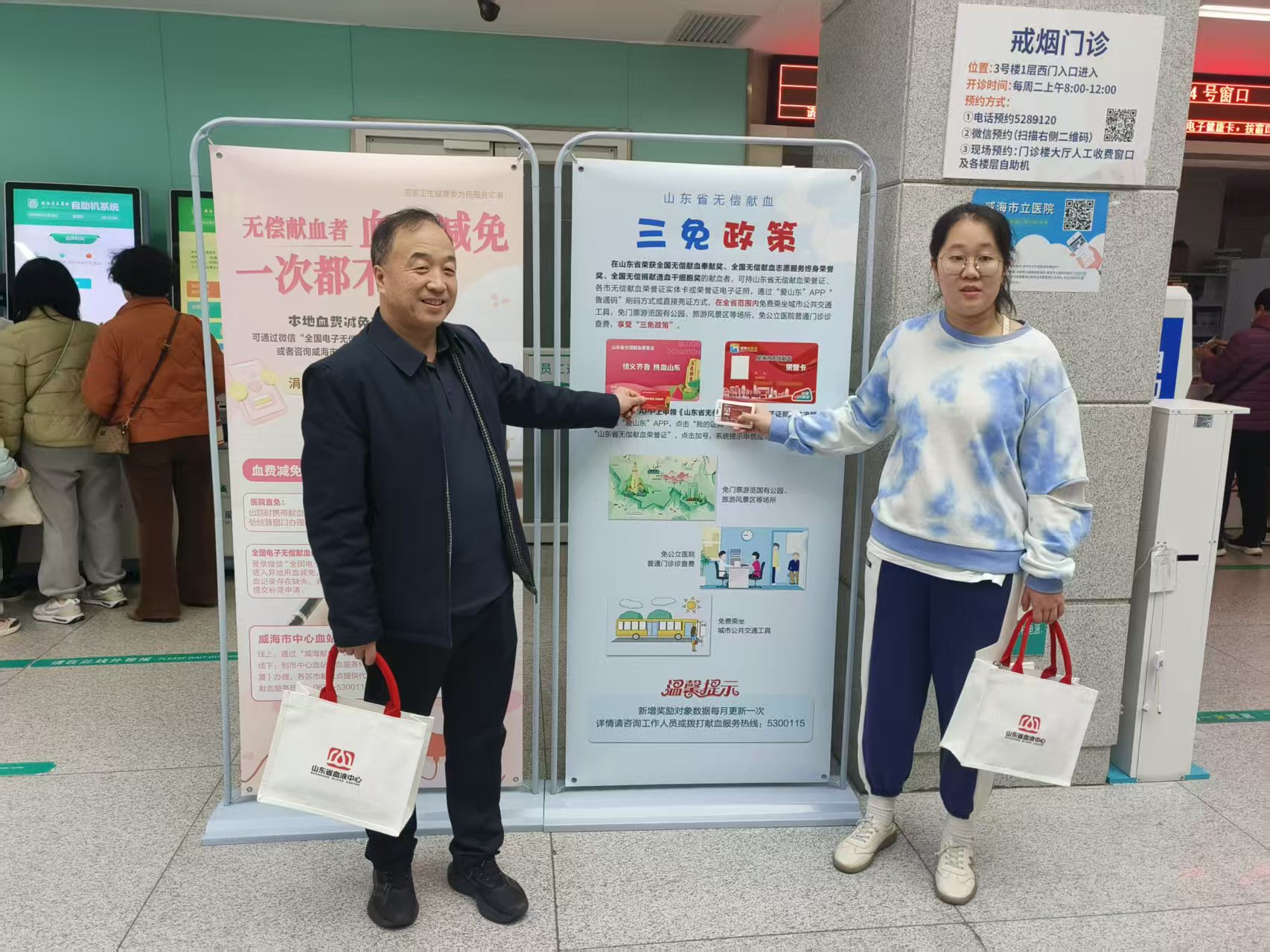 “我弟弟住院后緊急用血,輸了800毫升,出院時在威海市立醫(yī)院通過結(jié)算窗口直接減免了用血費(fèi)用880元。”曾獻(xiàn)血4000余毫升威海市民鄧偉直言,這既節(jié)省了時間成本,又提升了自己作為獻(xiàn)血者的獲得感和榮譽(yù)感。