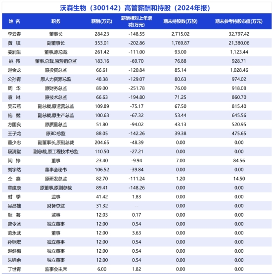 圖:沃森生物董監(jiān)高薪酬及持股情況(2024年報(bào)) 資料來源:Wind 制表:郭新志