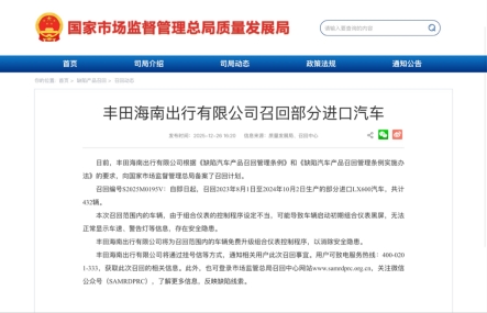 豐田海南出行有限公司將通過掛號信等方式,通知相關用戶此次召回事宜。用戶可致電服務熱線:400-0201-333,獲取此次召回的相關信息。此外,也可登錄市場監(jiān)管總局召回中心網(wǎng)站www.samrdprc.org.cn,關注微信公眾號(SAMRDPRC),了解更多信息,反映缺陷線索。