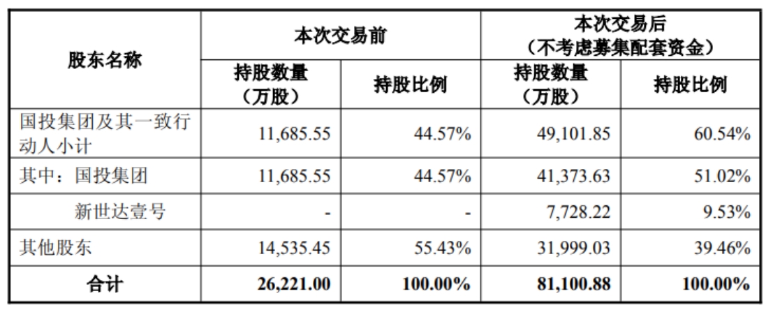 股權(quán)結(jié)構(gòu)方面,本次重組后,控股股東國投集團及其一致行動人的持股比例將從44.57%提升至60.54%。值得一提的是,交易對方中的新世達壹號、大基金二期預(yù)計持有國投中魯5%以上的股份,其中新世達壹號將表決權(quán)委托給國投集團,系國投集團一致行動人。