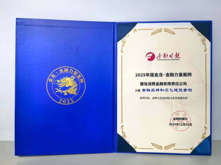 12月26日,2025年度“金龍?金融力量”案例在北京發(fā)布。建信消費金融公司(以下簡稱“建信消費金融”)報送的《品牌文化建設(shè)助力業(yè)務(wù)穩(wěn)健發(fā)展》案例經(jīng)評審,入選“金融品牌和文化建設(shè)案例”。