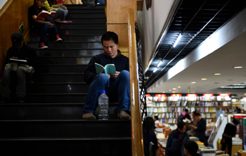 書(shū)店工作人員說(shuō),每天12點(diǎn)之前都會(huì)有許多人來(lái)這里讀書(shū),午夜過(guò)后雖然人流會(huì)相對(duì)減少,但也是夜夜不絕。