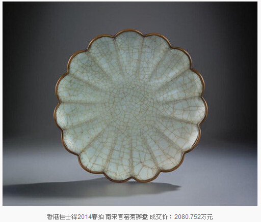 雖然古瓷市場的熱點目前仍在明清瓷器,但以宋瓷為代表的高古瓷器低迷的市場狀態(tài)正在逐年改變,精品面世屢屢振奮市場。2014年香港蘇富比春拍一件“北宋定窯劃花八棱大盌”以1.16億元成交創(chuàng)造了宋代瓷器的世界拍賣紀錄。今年4月的香港蘇富比又推出一件“南宋官窯青釉八方弦紋盤口瓶”,以9190萬元拍出。低價位如今年香港佳士得春拍,估價30-50萬港元的元明哥窯盤亦爆冷以880萬港元(人民幣704.88萬元)的高價成交。保利2015春拍,13世紀乾隆御題官窯貫耳小壺747.5萬元成交。